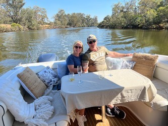 About Price is per person, including breakfast. We take you up the Murray River, enjoy the birdsong, feel the sunshine and relax whilst enjoying breakfast. menus to choose from are: Huon Smoked Tasmanian Salmon, potatoes Scrambled eggs rocket & Feta. Our most popular Shakshuka (a Spicy Middle Eastern dish) is a serving for two people. With crusty bread. Full English Breakfast Bacon, Eggs, Sausages, Mushrooms, Baked Beans Tomatoes, Toast, Tea Coffee Juice, Jam & Marmalade. There are fridge and toilet facilities onboard for your convenience BYO Bubbles for your champagne breakfast is welcomed More Info Antony Bridge is a qualified coxswain and will be your skipper for the duration of your time with us, whilst Clare will attend to all those little details as your hostess. All year round the Murray has its own uniqueness, so no matter what time of year you are here you can be certain of real country hospitality. Look us up when you plan your next visit to the Murray, Mandurah & Peel region. A new, local and vibrant company that is proud to offer a luxury personalised service for 2 to 4 people, whether you're having a Breakfast Cruise or enjoying taking in the sights, or maybe experiencing our Sunset & Tapas Cruise. We also offer Proposals on the Murray - why not pop the question in Style!
